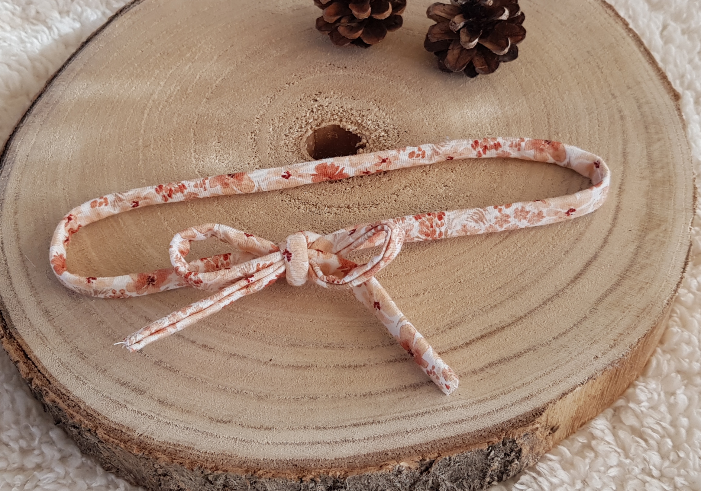 Lieve hoofdband, gemaakt van zachte tricot. De stof is voorzien van een schattige print. Door de lengte van de band is hij lang te gebruiken. De band meet ca. 75 cm. Is geschikt voor kindjes met ca mt 62 (4 mnd). Echter, variabel te gebruiken met grotere of kleinere knoop.