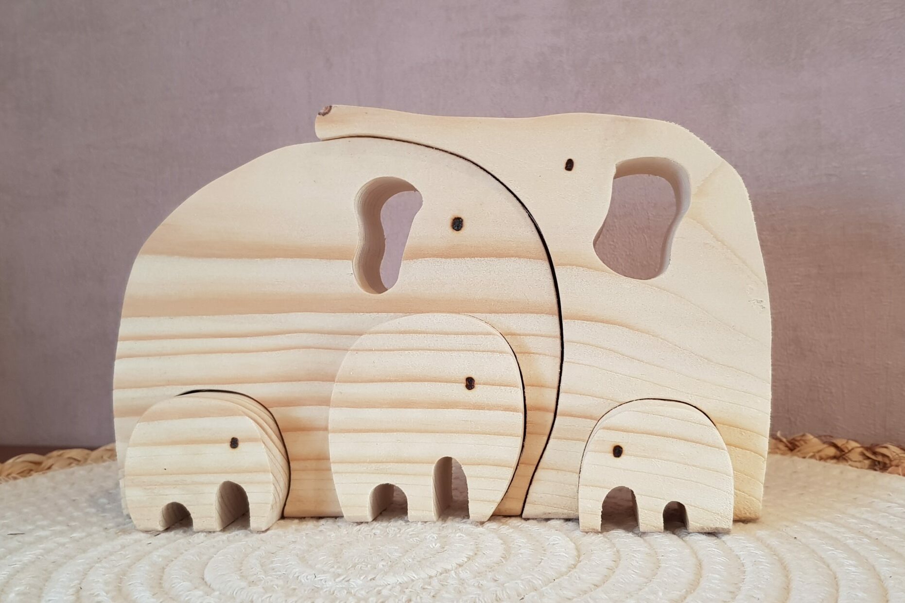 Een echte eye-catcher, deze leuke olifantenfamilie. De delen zijn los van elkaar neer te zetten, maar ook in 3D; de een wat verder naar voren dan de ander.