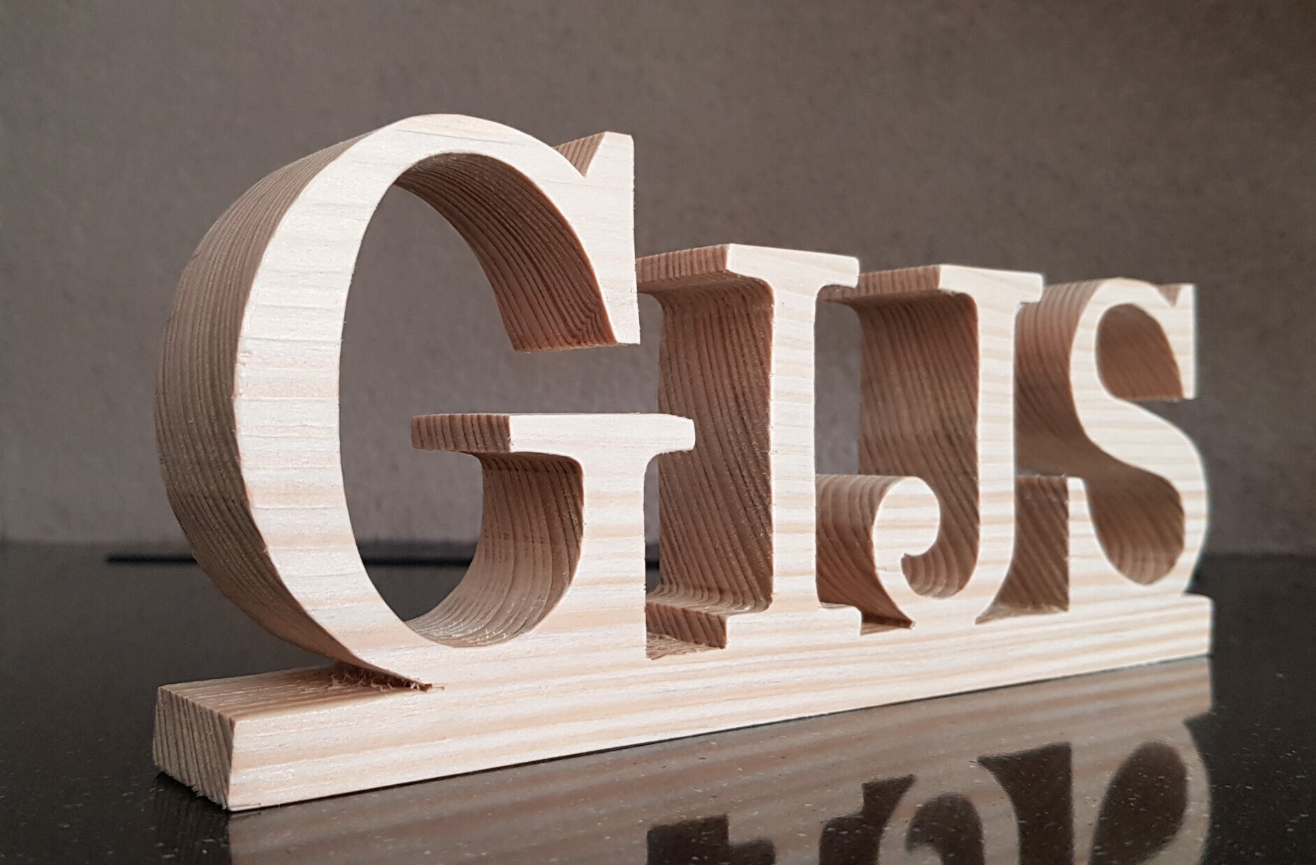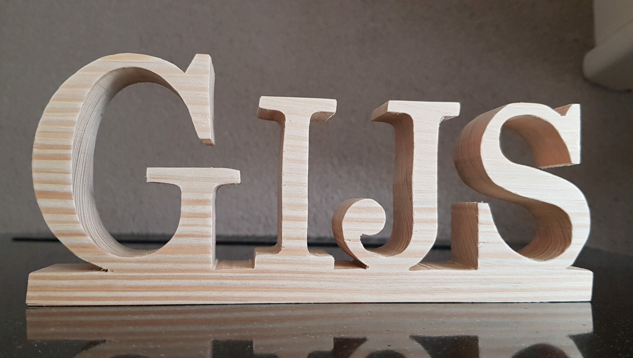 Te leuk item: uit hout gefiguurzaagde naam. Gefiguurzaagd; niet gelaserd.