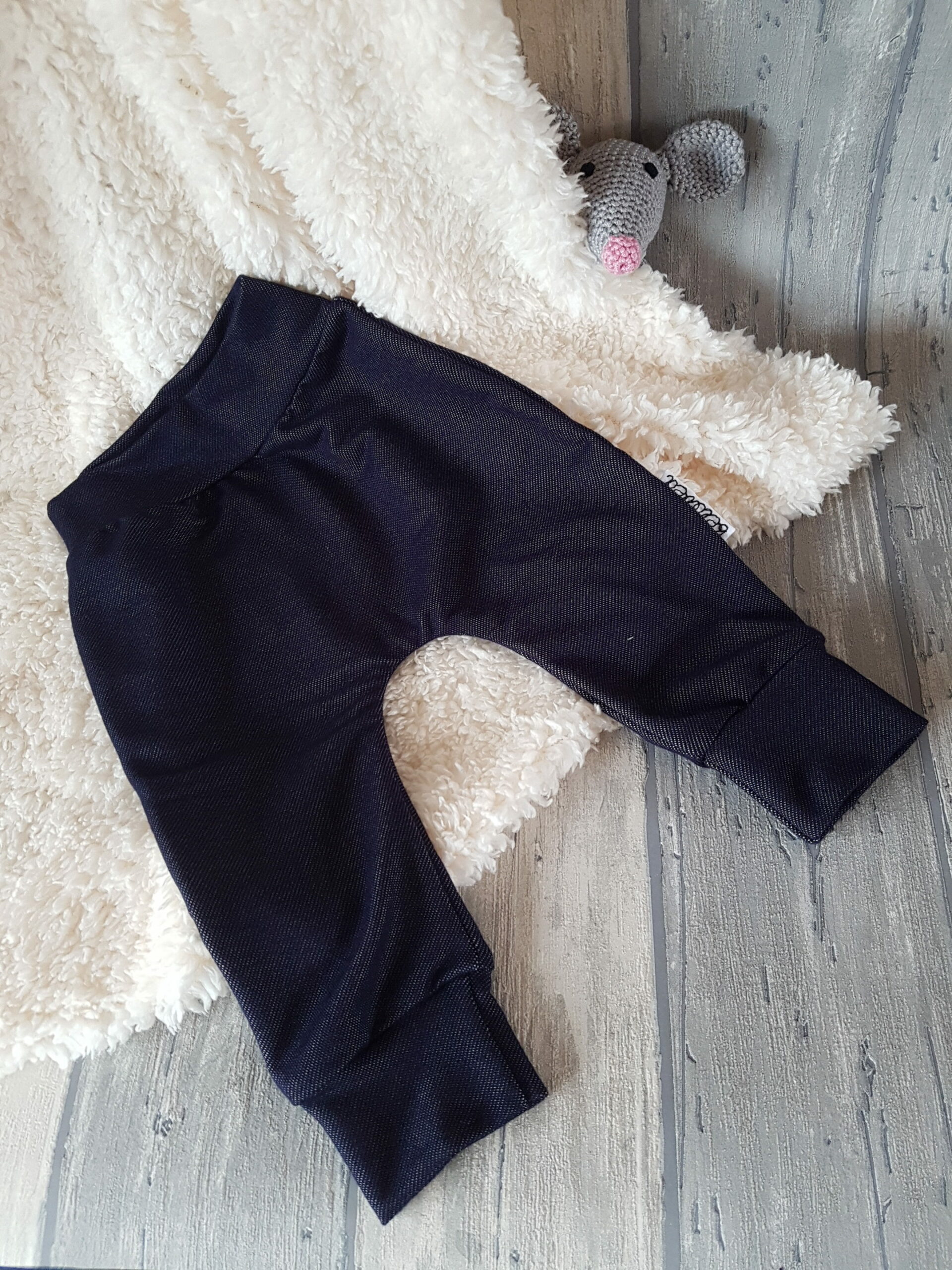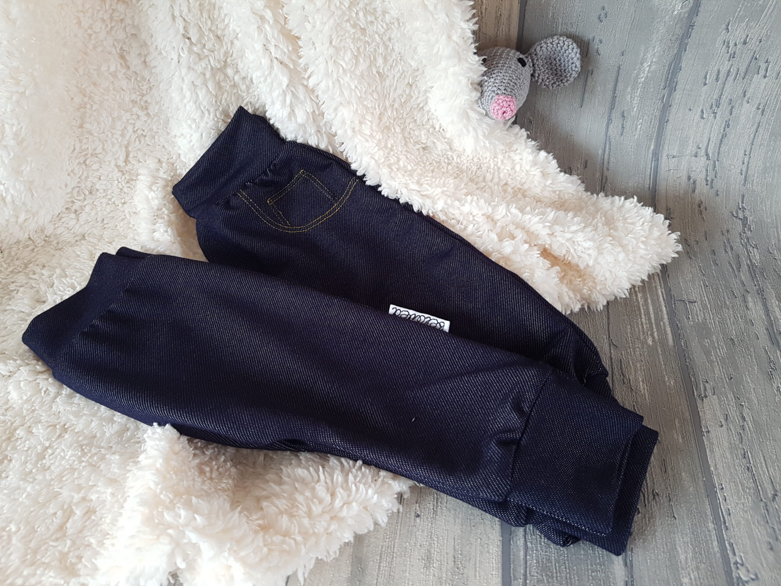 Leuk, multi-inzetbaar spijkerbroekje. Het broekje is gemaakt van stretch-stof, en heeft veel rek. Onderaan en bovenaan zitten boordjes, waardoor de beentjes lekker warm blijven. Het broekje met nep-zakjes is ook te koop in de shop.
